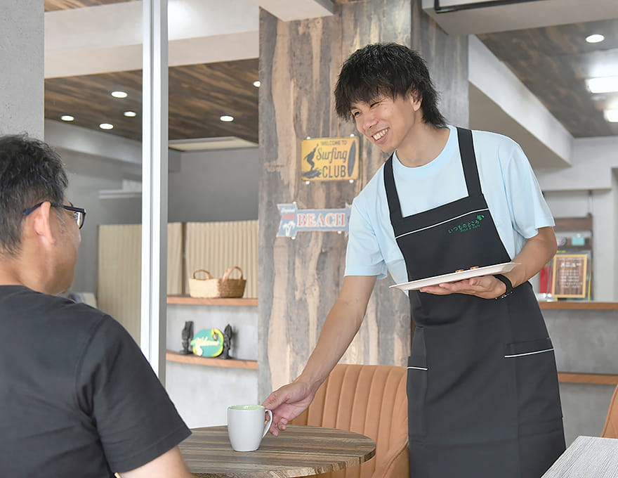 ハワイアンカフェをコンセプトにした、明るく開放的な雰囲気が特徴です。施設内は木目調の家具や観葉植物、ハワイアンミュージックが流れる空間で統一され、まるで南国のカフェにいるような心地よさを感じていただけます。香り豊かなコーヒーをはじめとしたお茶やジュースなどのドリンクをご提供。リラックスした環境で自然と会話が生まれ、交流の輪が広がります。