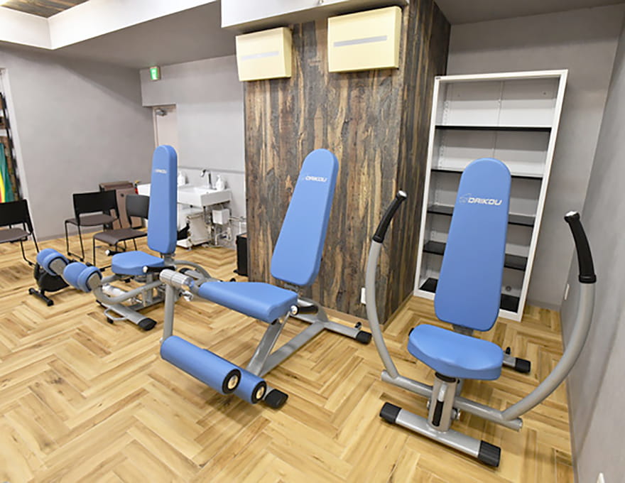 油圧式のトレーニングマシンを使った筋力トレーニングや、軽負荷で安全に運動できるミニバイクによる有酸素運動、伸縮性のあるセラバンドを活用した体操など、日常生活動作の維持・向上を目的とした運動を行っていただけます。無理なく続けられる環境で、日常生活の動作をスムーズに保ち、健康的な体づくりをサポートします。